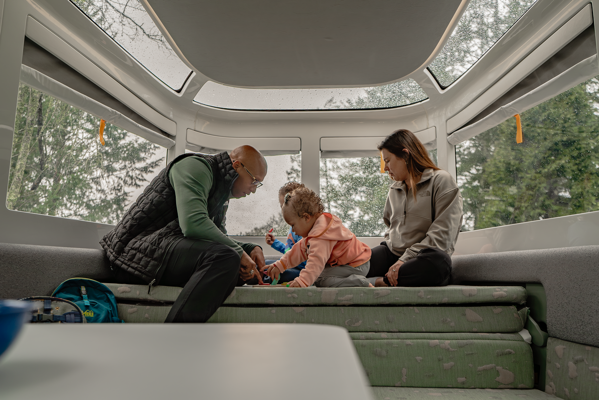 Ground-breaking aerodynamic drag performance is part of what makes a Lightship trailer completely unique in the industry. From day one, the AE.1 was designed for maximum aero-efficiency. Dual Mode enables the trailer to convert between low-profile Road Mode (which minimizes the AE.1's frontal area to increase range and towability) to Camp Mode (giving grand, spacious interior headroom and dramatic panoramic windows).