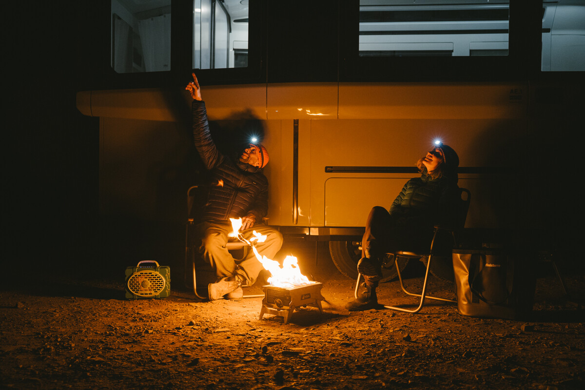 High-capacity lithium-ion batteries power camp essentials for up to a week off-grid – quiet, clean, and without a single drop of fuel.